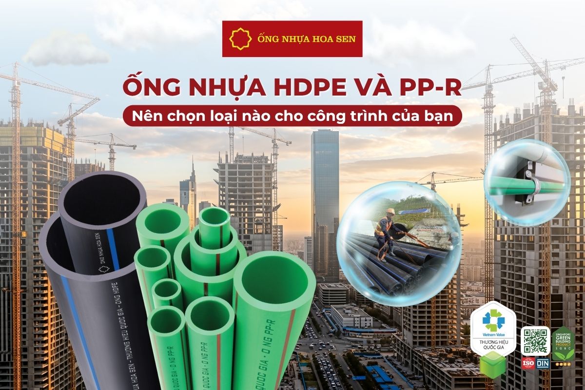 Là một trong những nhà sản xuất vật liệu xây dựng hàng đầu Việt Nam, Tập đoàn Hoa Sen tự hào cung cấp cả hai dòng sản phẩm Ống nhựa PPR và Ống nhựa HDPE đạt các tiêu chuẩn quốc tế khắt khe nhất (DIN, ISO). Sản phẩm được sản xuất trên dây chuyền công nghệ Châu Âu, sử dụng 100% nhựa nguyên sinh, đảm bảo chất lượng đồng đều và tuổi thọ lên đến 50 năm.
